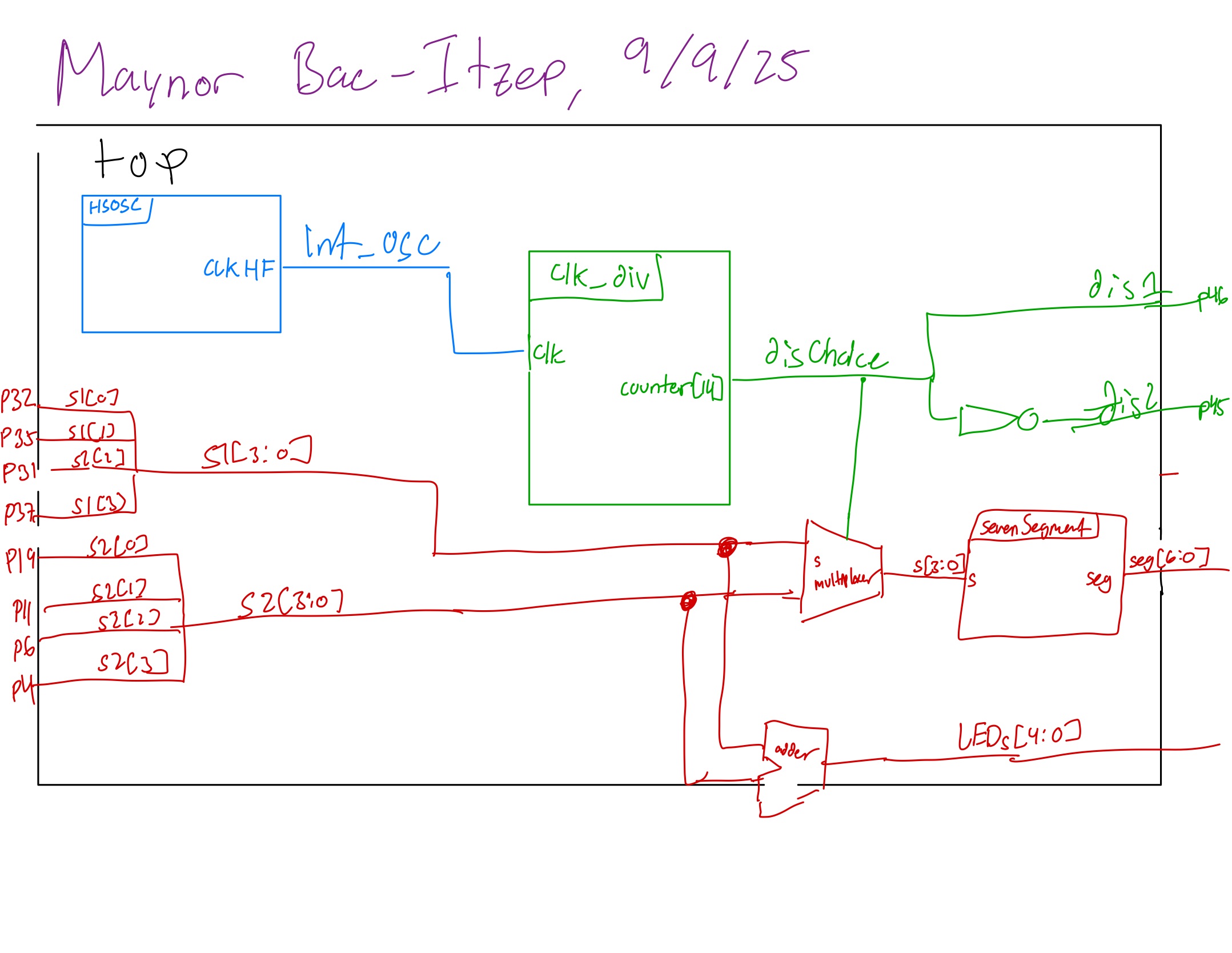 In this lab, we were to use time multiplexing to use the I/O on our FPGA to display two independent hexadecimal numbers on a duel seven-segment display. We had to use eight inputs to provide data and use five LEDs to display the sum of the values present on the seven segement display